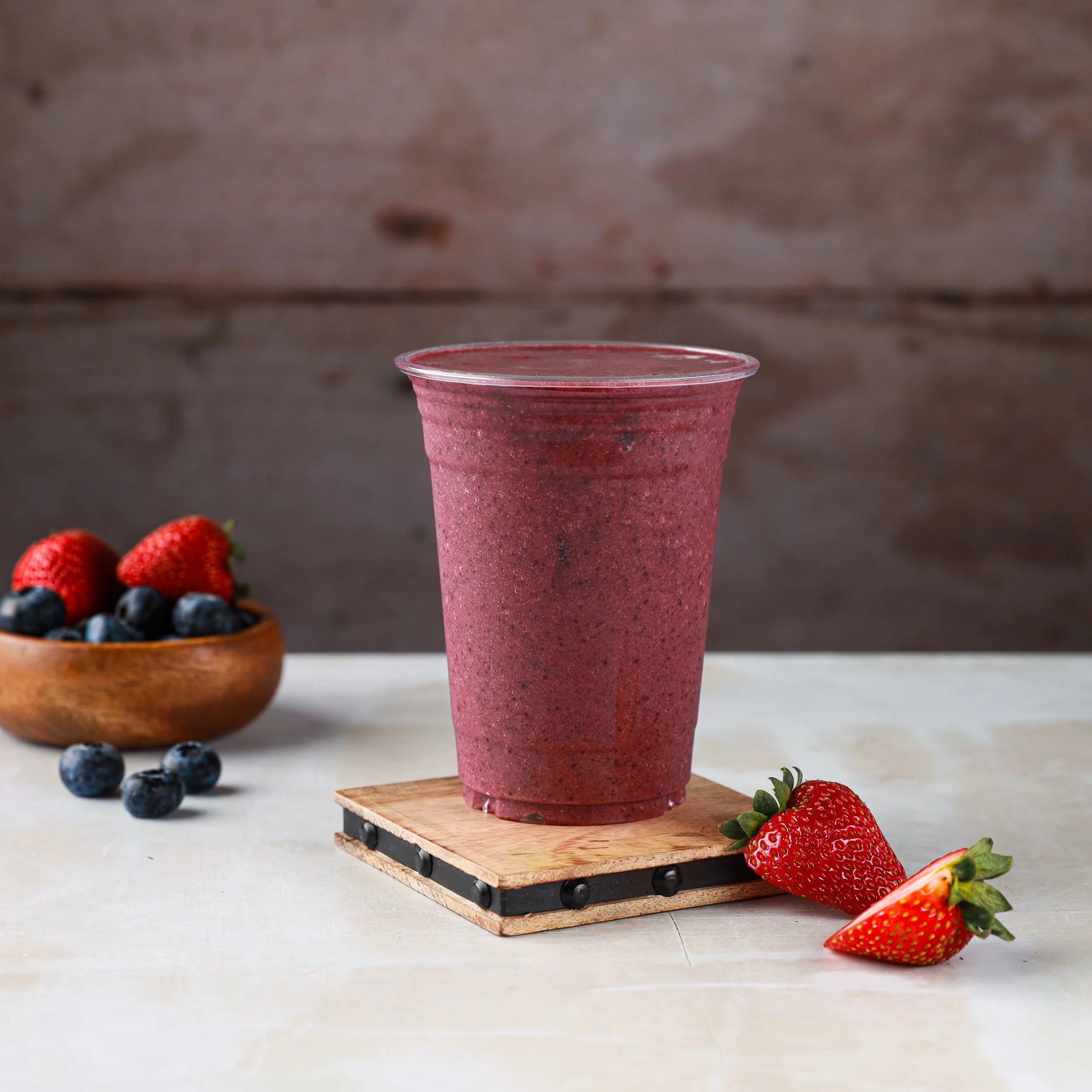 Blueberries, strawberries, banana & pomegranate juice