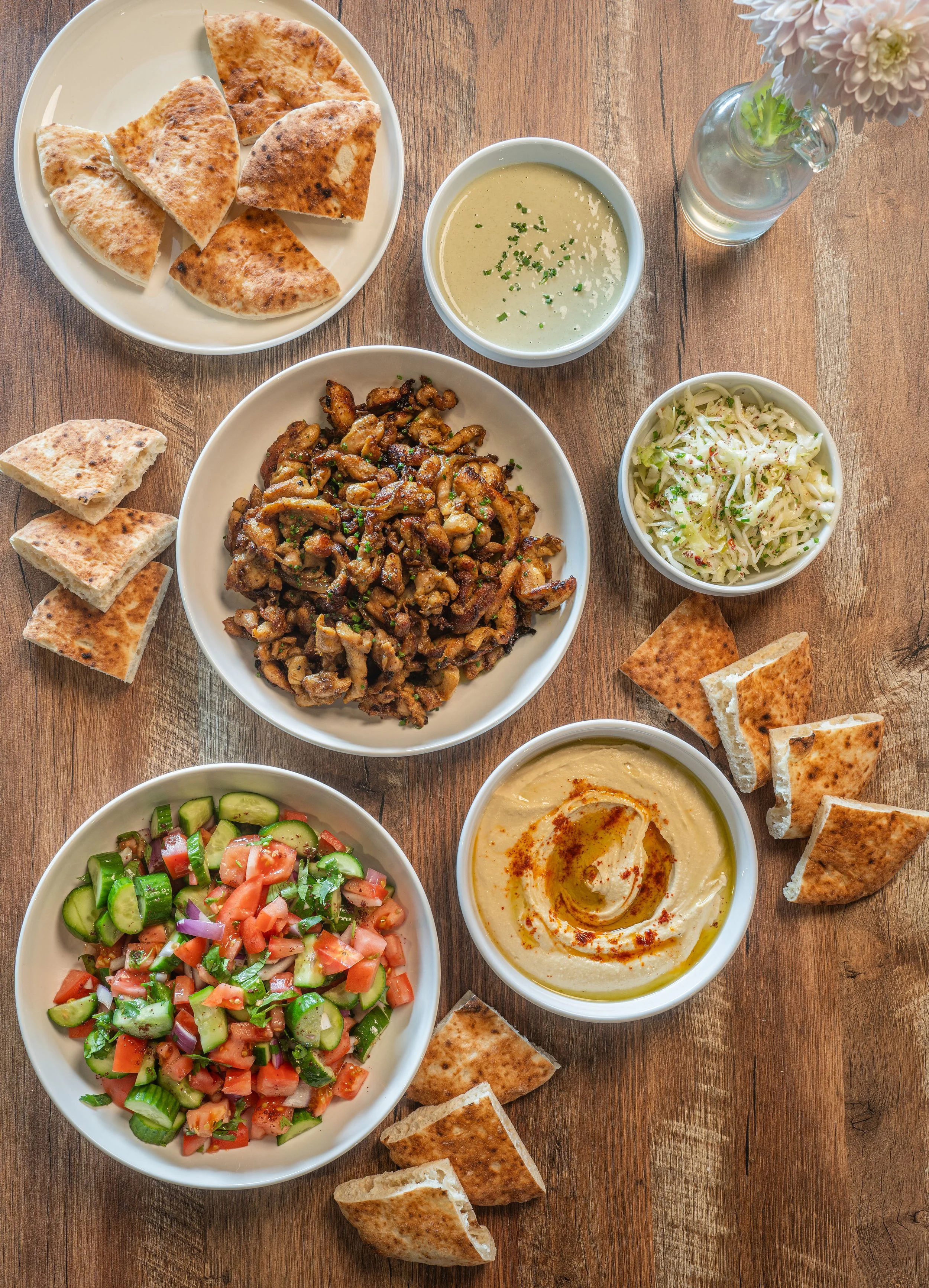 Pita — 1.5 | Marcel Hummus w/ Pita — $8 | Feta Garlic & Za'atar Fries — $8 | Za'atar Fries — $6 | Lemon Cabbage Slaw — $6 | Sautéed Spinach with Garlic — $7 | Sautéed Broccoli with Garlic — $7 | Halloumi Cheese — $6 | Fried Halloumi Bites (5) — $6 | Falafel (5) — $4 | Israeli Pickles — $4 | Basmati Rice with Saffron — $7 | Chicken Shawarma — $7 | Sautéed Tofu — $6 | Mediterranean Tuna Salad — $7